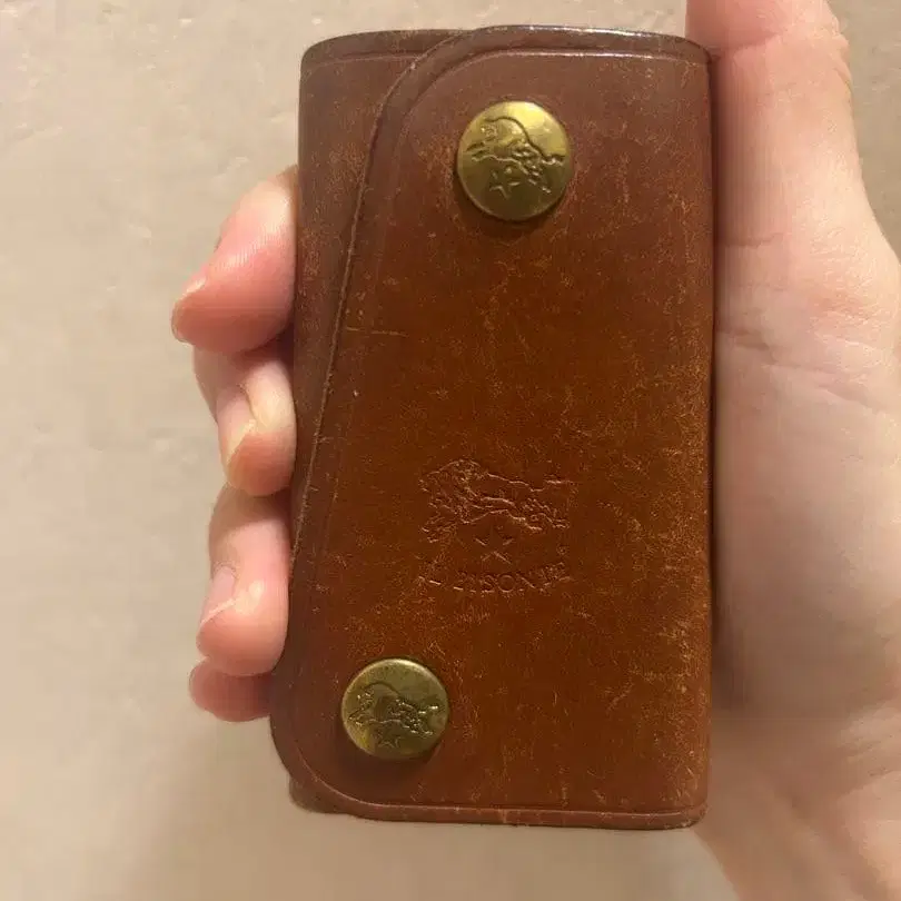 브라운 가죽 키케이스 골드 버튼 포함