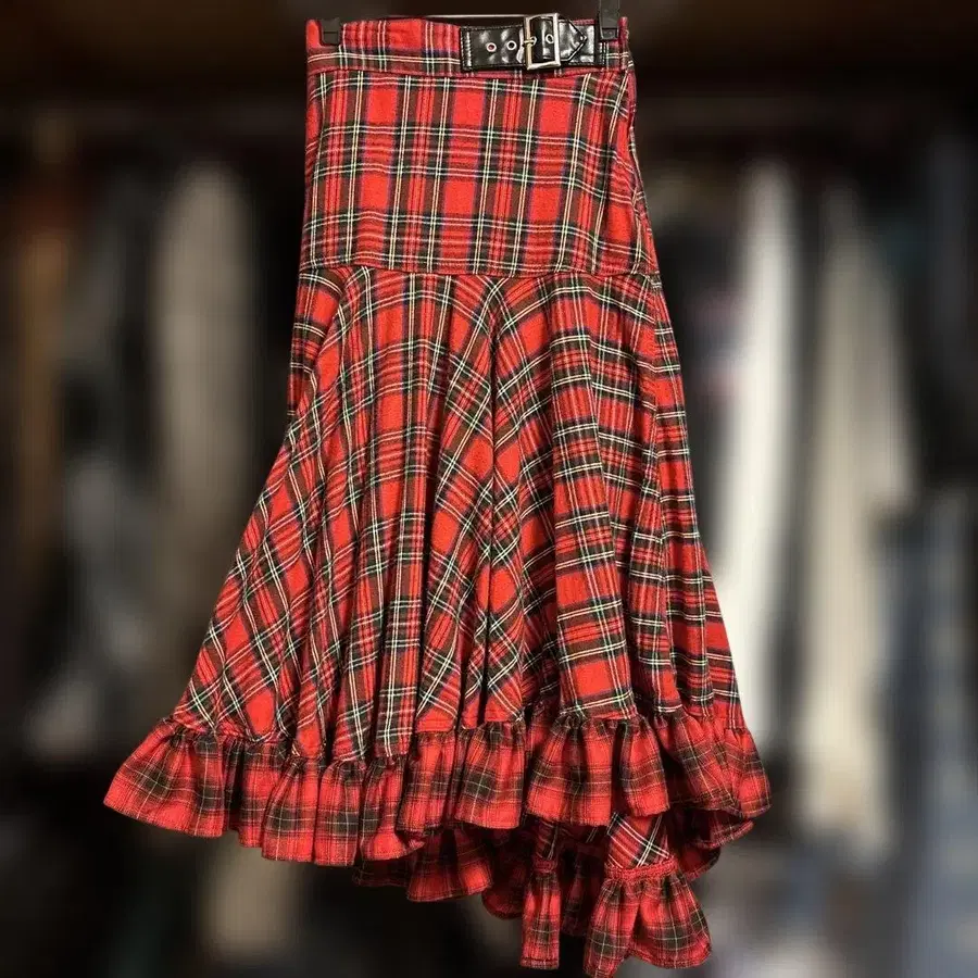 jouetie 깅엄 체크 프릴 스커트 빨간색