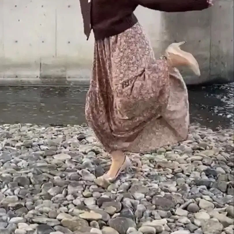 브라운 니트 가디건과 플로럴 롱 스커트 세트