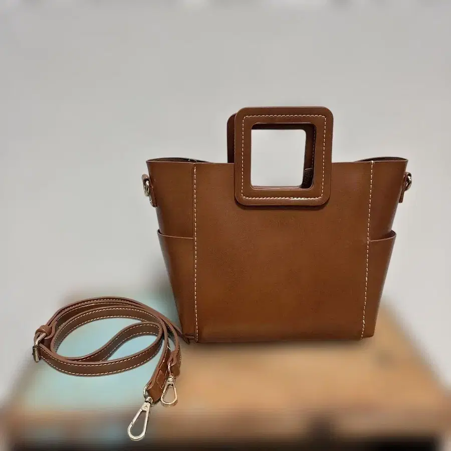 브라운 숄더백 스퀘어 핸들
