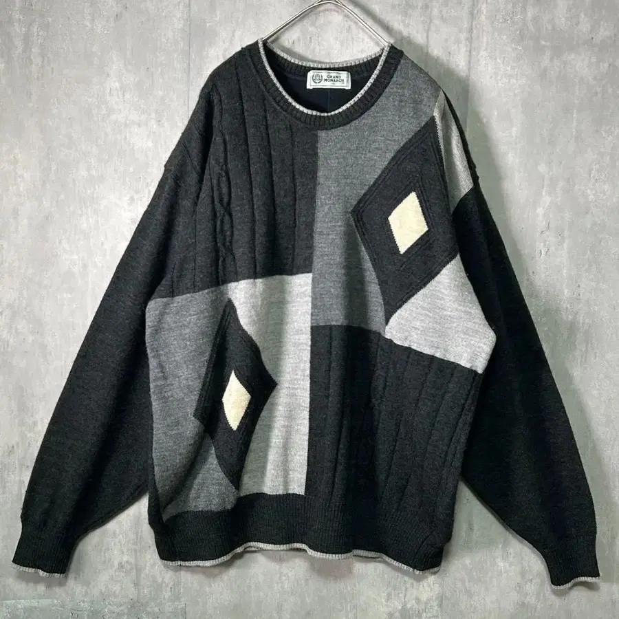 일본산 빈티지 니트 다이아 아가일 그레이 XL 울