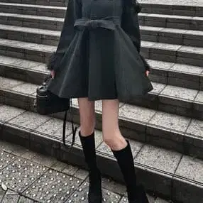 퍼 티펫 리본 벨트 플레어 코트[ze911]
