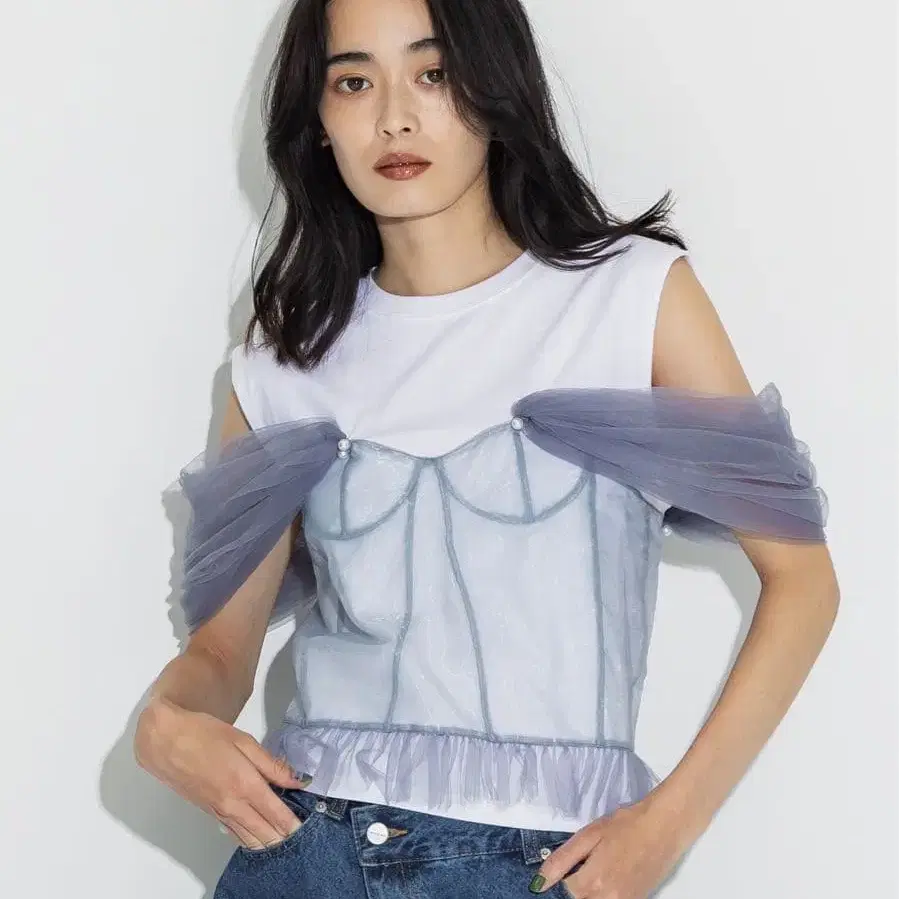 VIVIANO x STUDIOUS 튤 코르셋 티셔츠