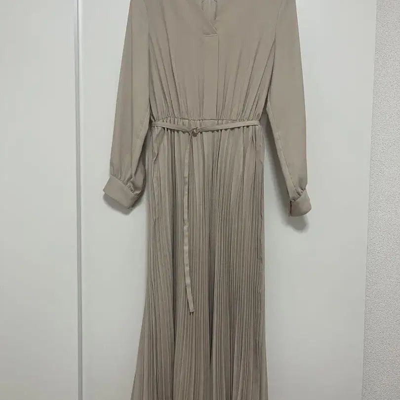 그린 레이블 릴랙싱 베이지 플리츠 긴팔 원피스