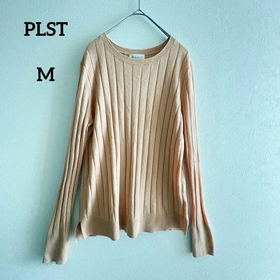 PLST 리브 니트 스웨터 M 핑크 베이지 긴팔 심플