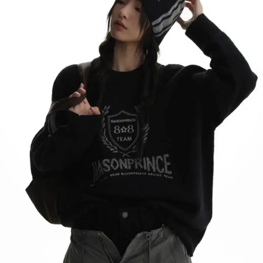 MASONPRINCE의 엠블럼과 로고가 자수된 유니크한 디자인. 오버사이즈 실루엣이 특징이며, 캐주얼한 스타일에 최적입니다.