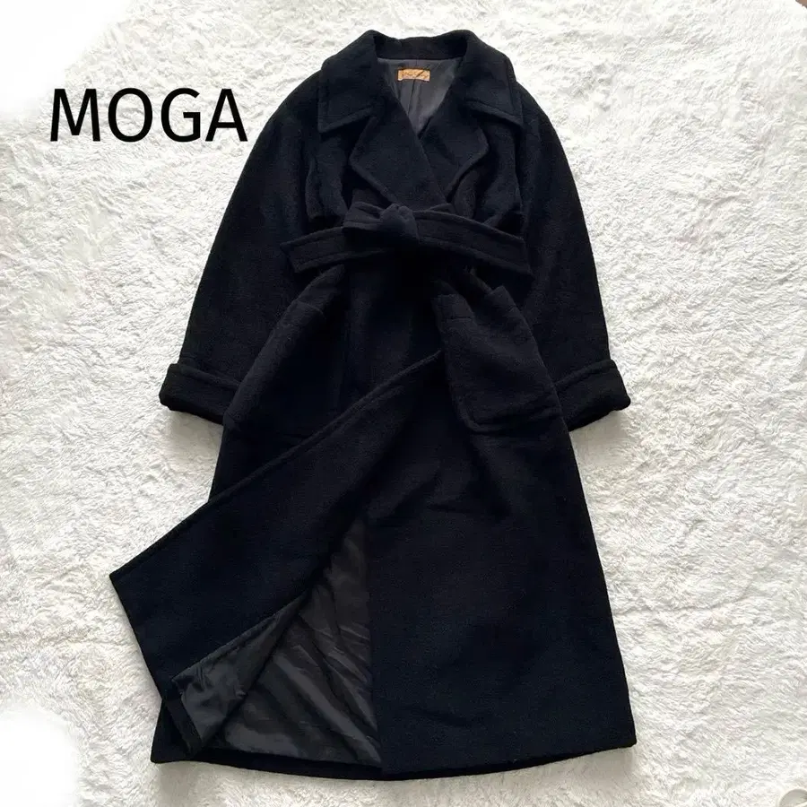 MOGA 모가 빅 울 100% 롱 코트 벨트 포함 블랙
