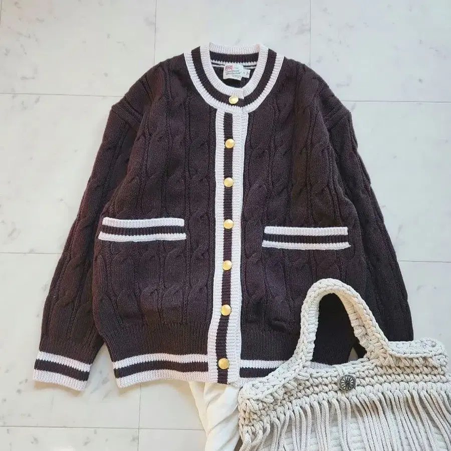 새상품급 트래디셔널 웨더웨어 가디건 브라운 루즈핏 골드 버튼