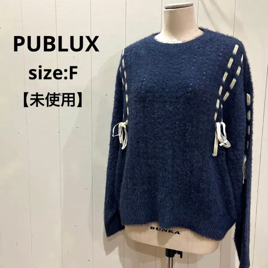 PUBLUX (파브뤽스)의 리본 스티치가 귀여운 샤기 니트입니다.