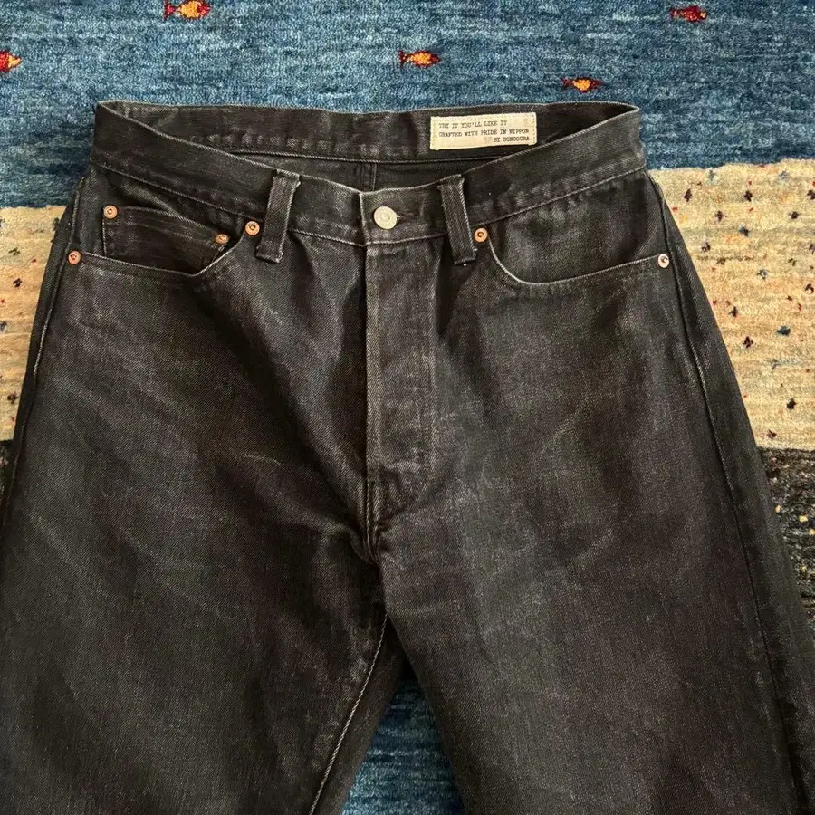 일반적으로 출시되는 블랙 데님과 달리, 세로실과 가로실 모두 블랙으로 염색하여 더욱 깊이 있는 진한 블랙으로 완성되었습니다.