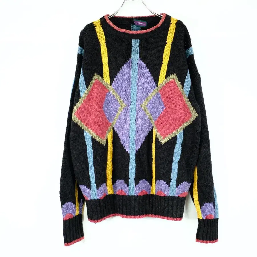 1980s 빈티지 총 패턴 니트 스웨터 오버 사이즈 블랙 레어 디자인