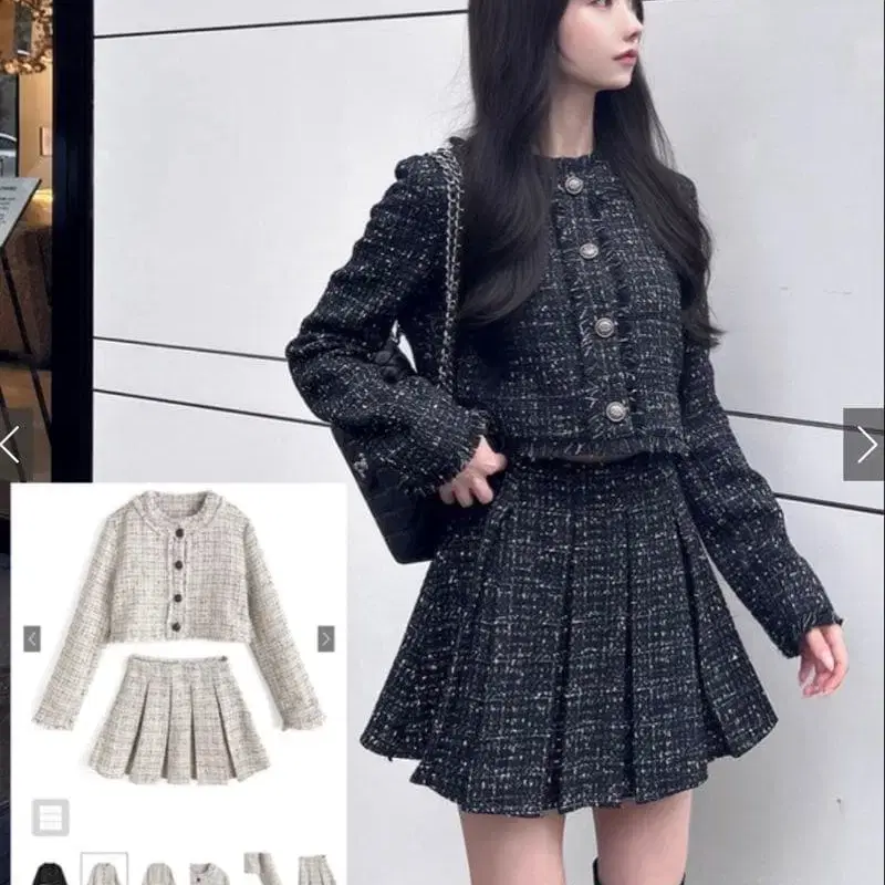 트위드 자켓 x 플리츠 미니 스커트 셋업 [ai224]