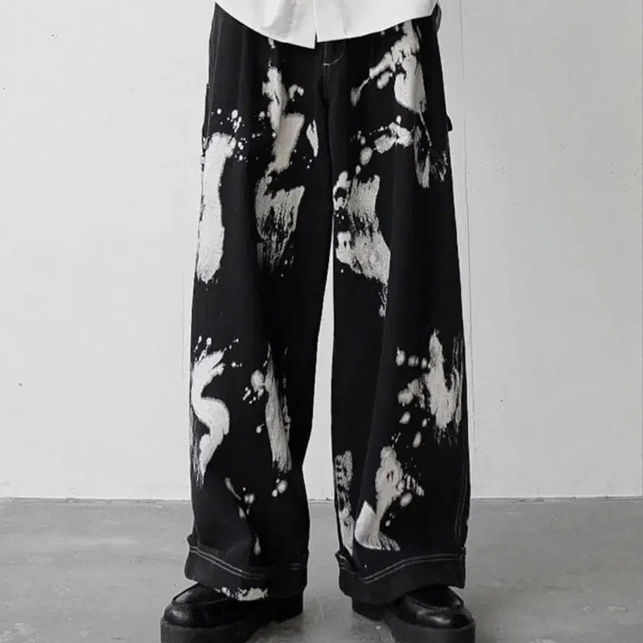 밑단의 볼륨과 랜덤한 페인트로 독특한 분위기를 연출했습니다.