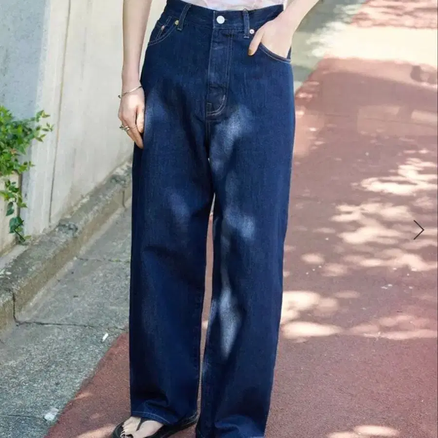 약간 하이 밑위로, 허리부터 힙까지 깔끔하게 떨어지는,