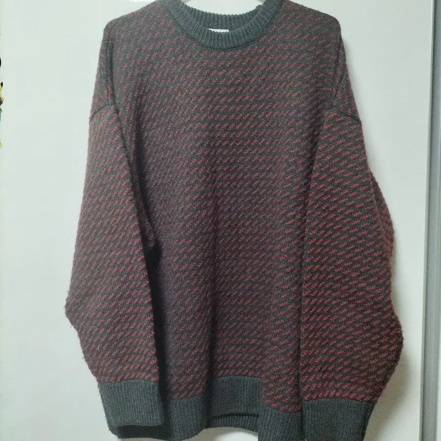 MACOBER 그레이/레드 오버 사이즈 스웨터