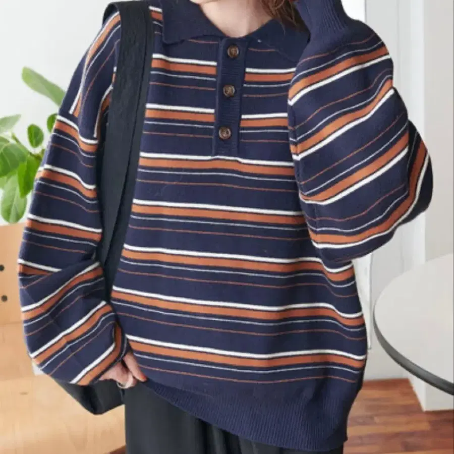 Discoat 미사용 새상품 멀티 보더 니트 폴로