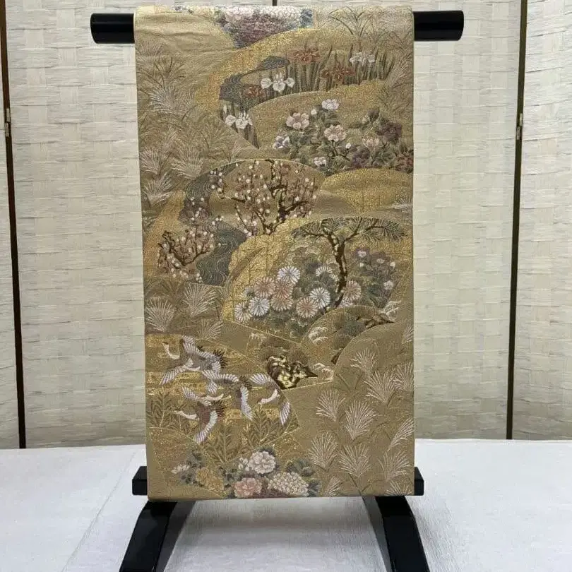 ❃ 골드 바탕에 지이패턴과 사계절 꽃, 학 등의 무늬가 있는 럭셔리한 후쿠로 오비입니다(o'∀`) ♪