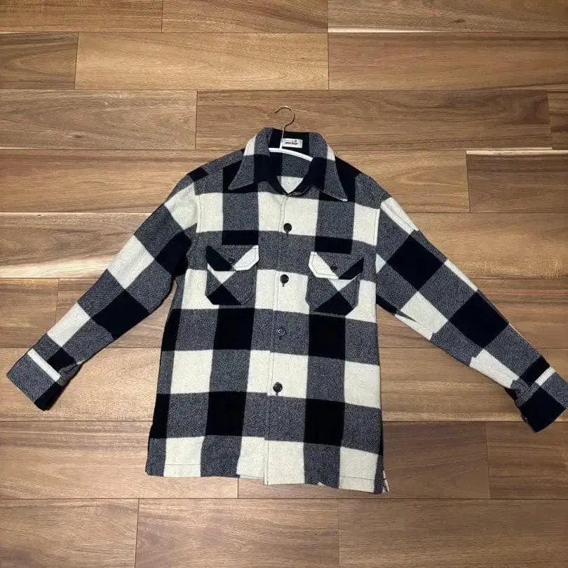 매키노 자켓 화이트 블랙 체크 무늬 울 셔츠 자켓