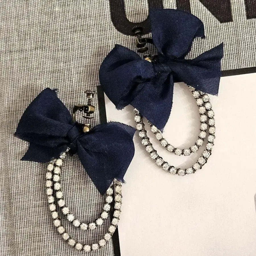 [바니스NY 구매] 네이비 리본 포함 스와로브스키 귀찌