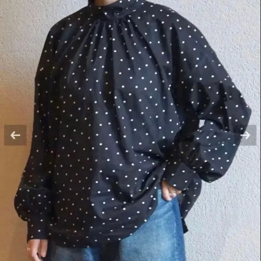 저널 스탠다드 랙스 도트 로운 하이넥 퍼프 슬리브 블라우스