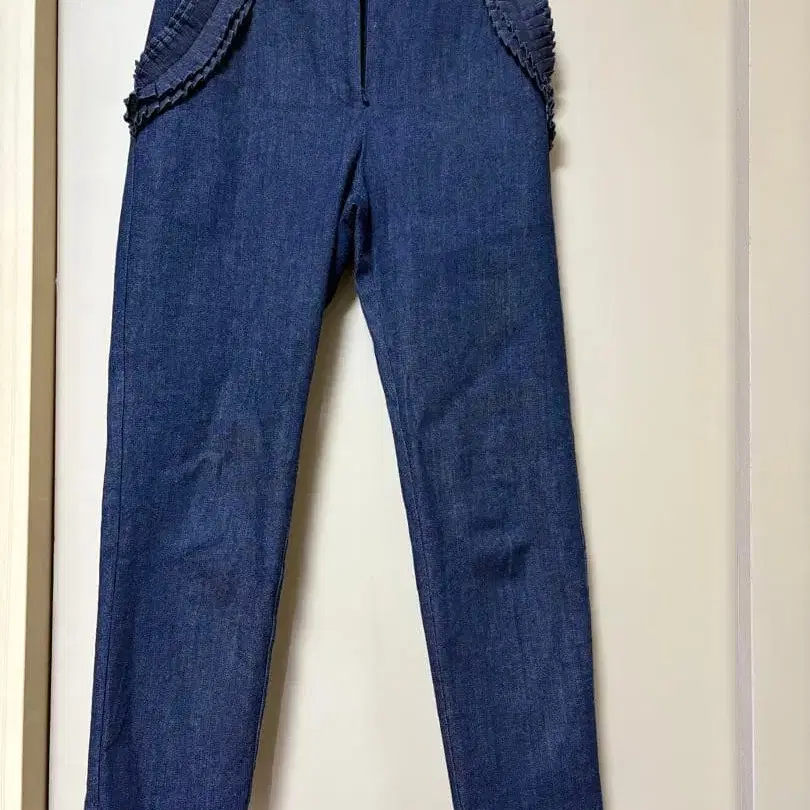 프릴 포켓 부착 다크 블루 데님 팬츠