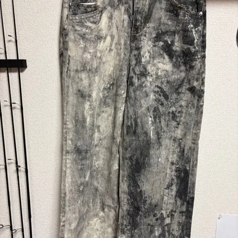 페인트 가공 와이드 레그 데님 팬츠 그레이 계열 가격 인하 가능