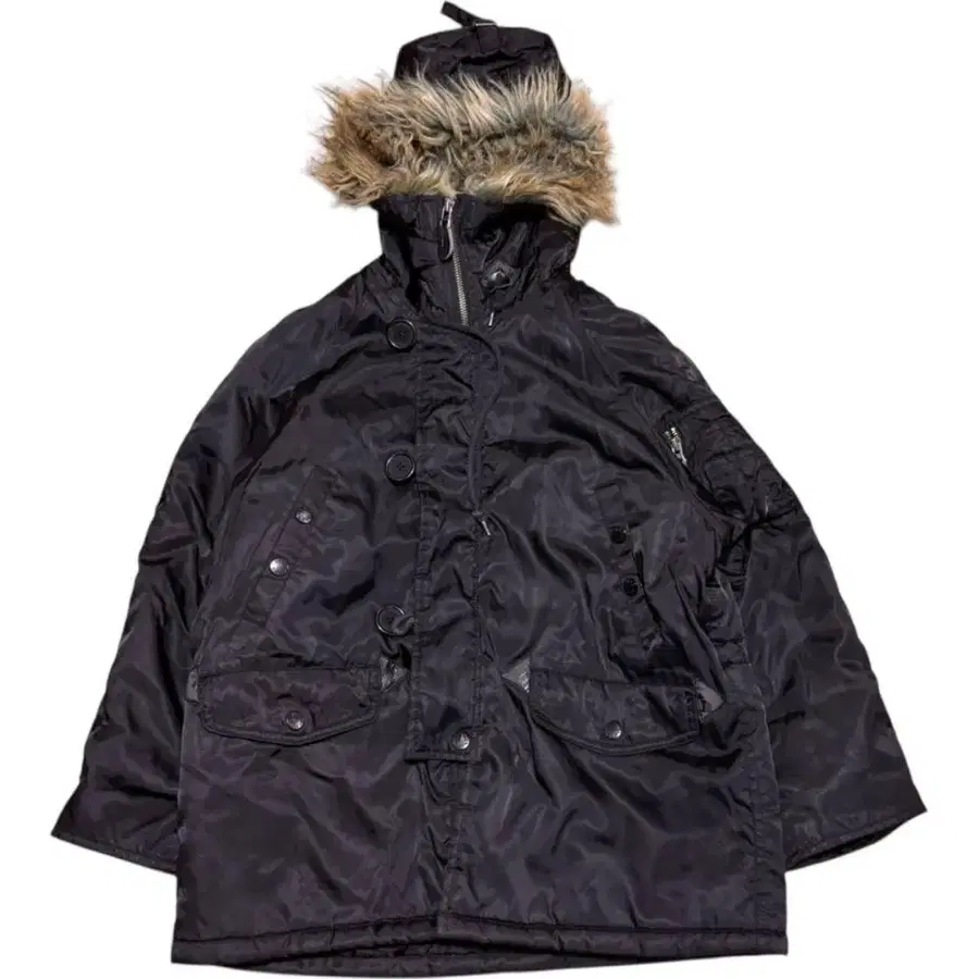 avirex 밀리터리 백 로고 블랙 퍼 n3-b 150