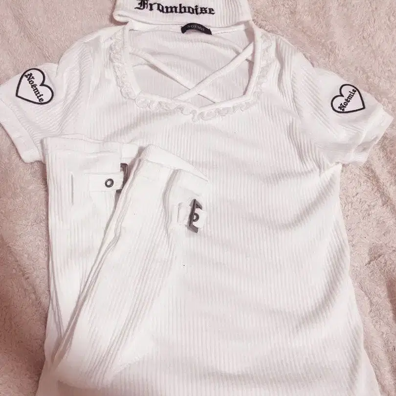 NOEMIE 4WAY 하트 와펜 암워머 티셔츠