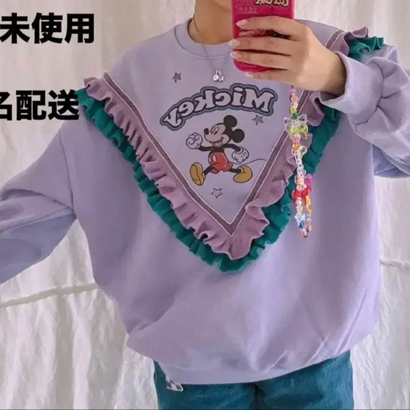 새상품 미사용 [디즈니] 미키 프릴 맨투맨 퍼플 보라색 완판템