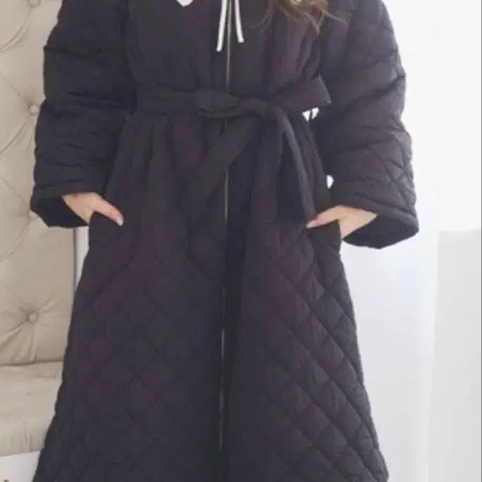 Areeam 카라 포함 충전솜 퀼팅 코트 블랙