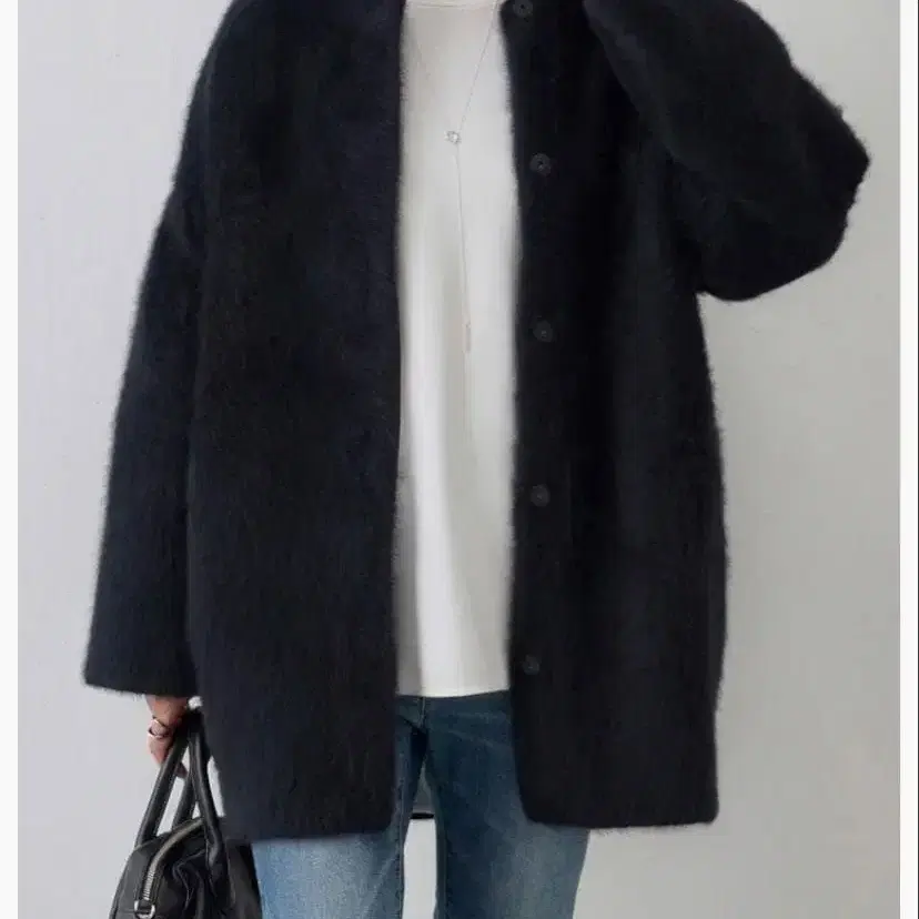 미사용 새상품 퍼 느낌 오버 사이즈 가디건 블랙 프리 사이즈