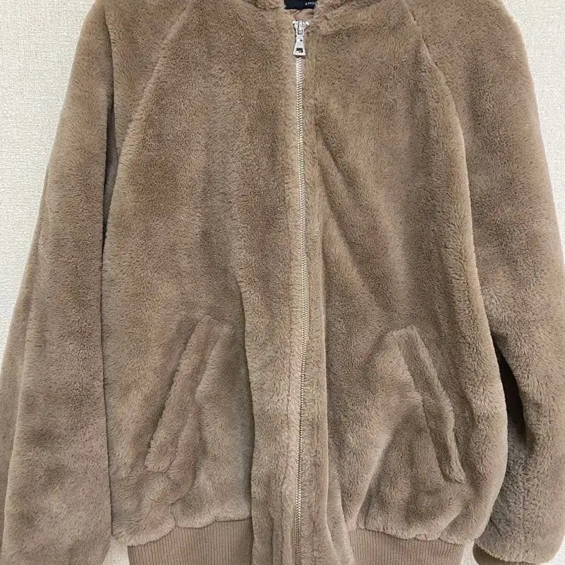 EMODA 베이지 플리스 자켓 후드 부착