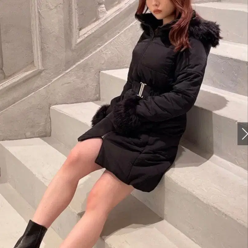 후드 부착 블랙 다운 자켓