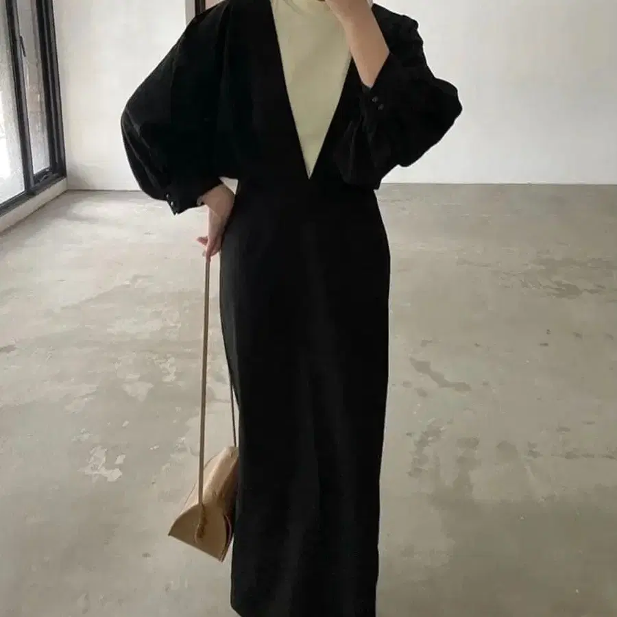 nairo 블랙 벌룬 슬리브 롱 원피스 S