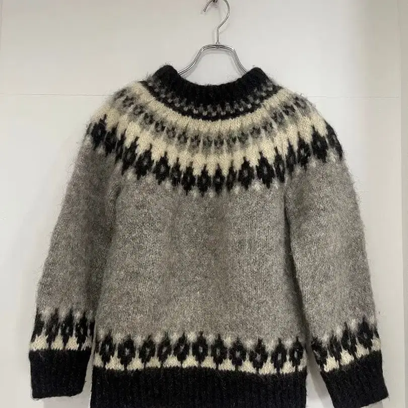 노르딕 무늬 울 스웨터 긴팔 그레이