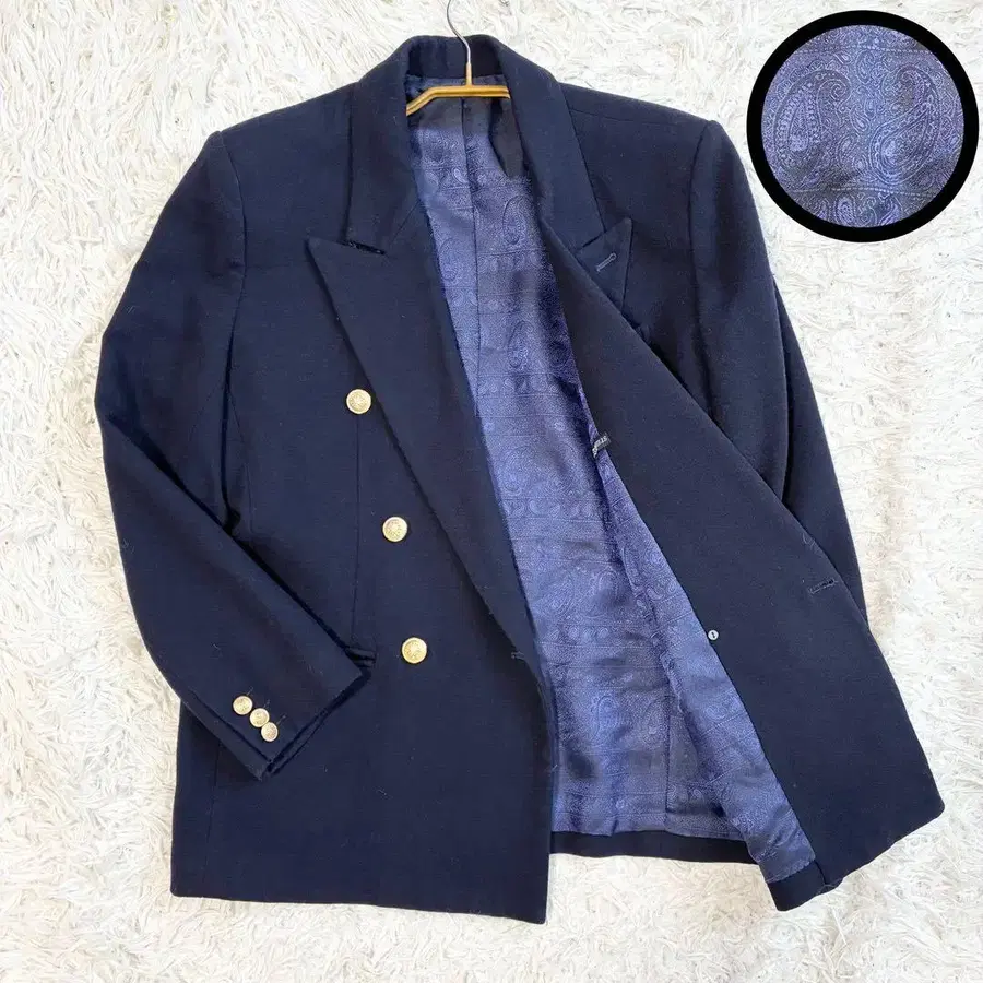 빈티지 더블 브레스트 자켓 네이비 골드 버튼 울 6 버튼