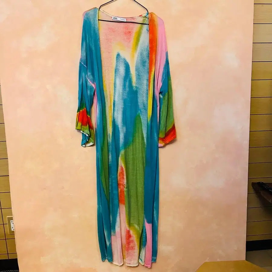 ZARA 가운 원피스 맥시 길이 겉옷 멀티 컬러 타이다이 M