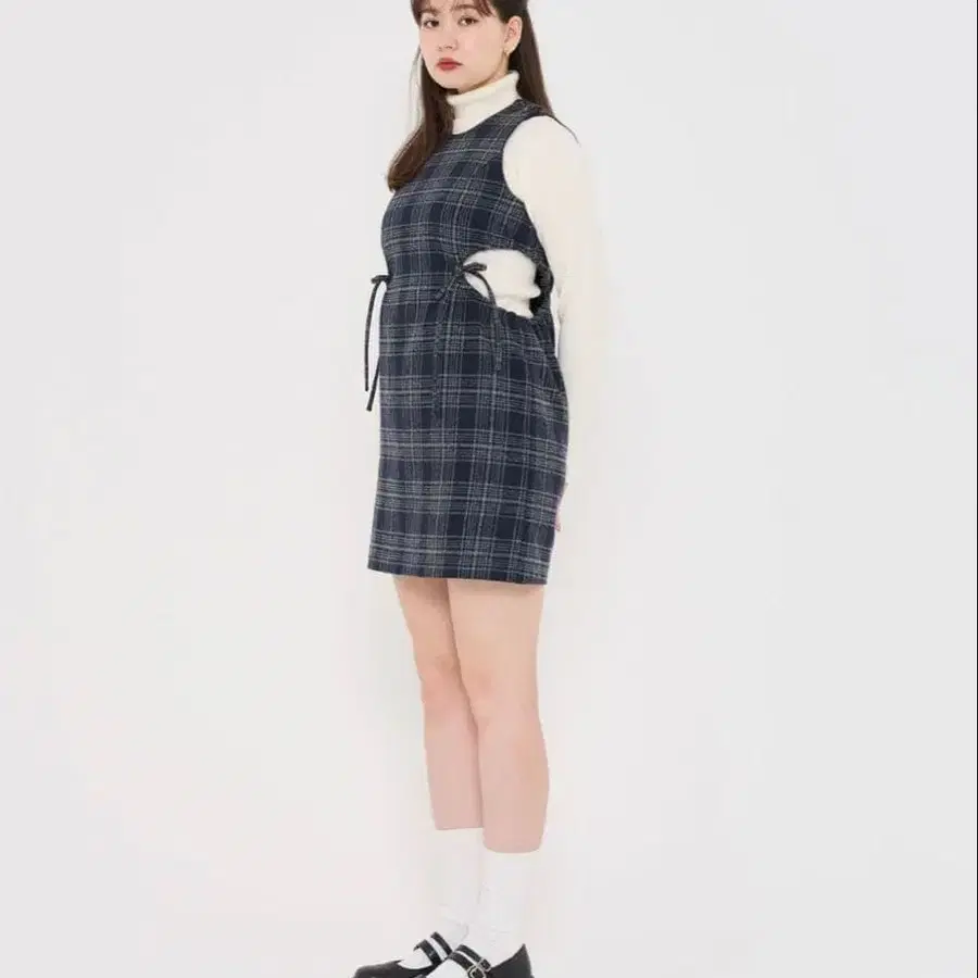 tina jojun 티나조준 체크 무늬 슬리브리스 미니 원피스