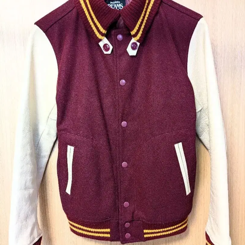 BEAMS 빔즈 바시티 자켓 M 와인 레드/아이보리