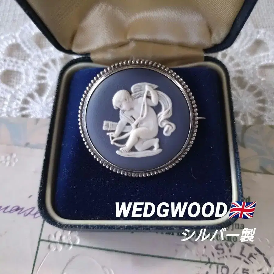 영국제 WEDGWOOD 웨지우드 실버제 짙은 파랑 카메오 브로치