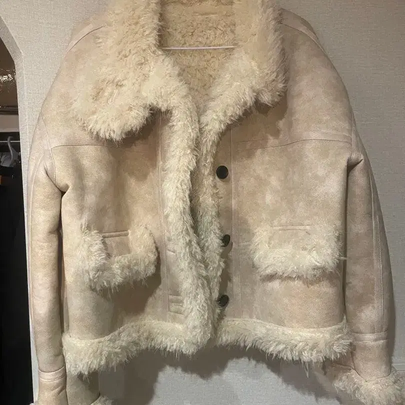 TWEE 오블리 퍼 배색 스웨이드 무스탕 Cream