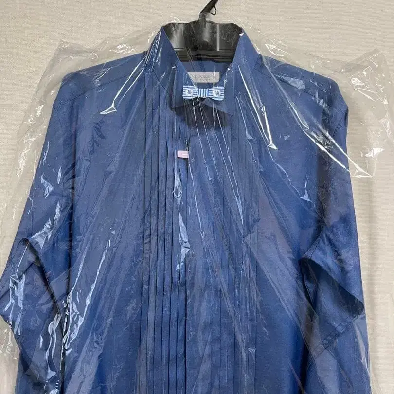 네이비 블루 데님 윙카라 셔츠 플리츠 L 사이즈