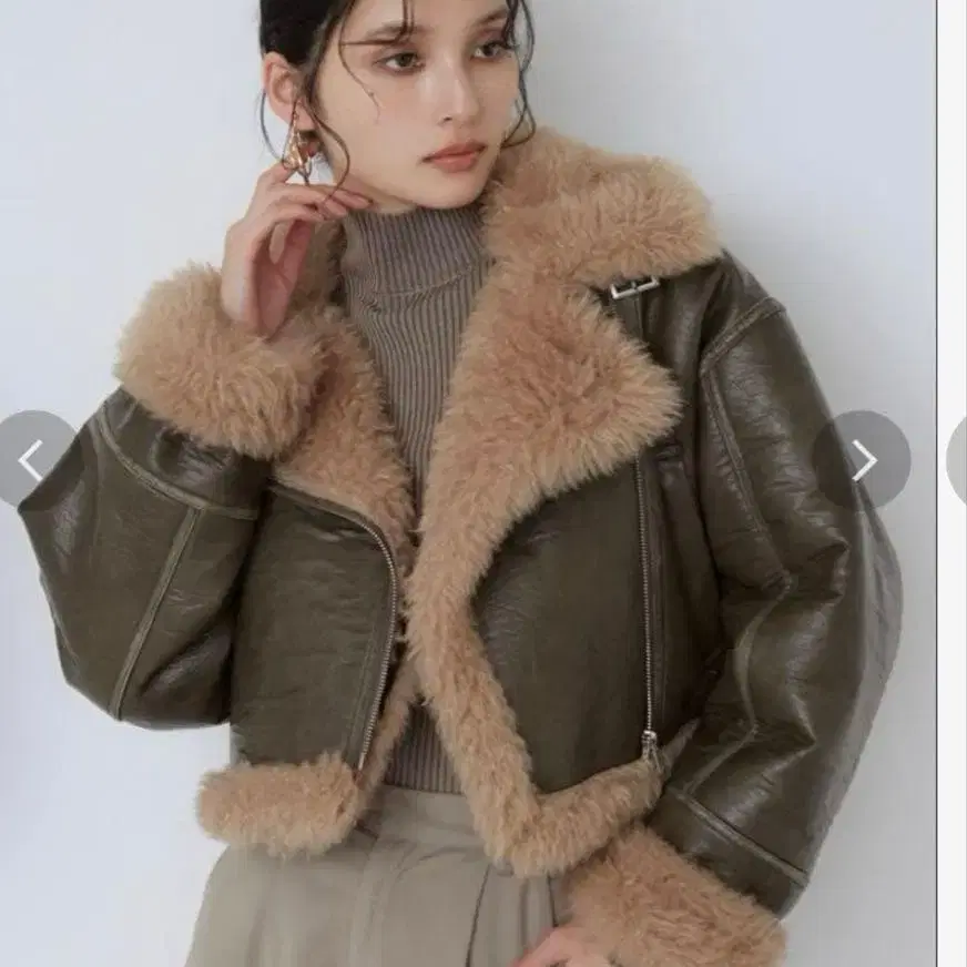 [ 당일 발송 가능 ] MURUA 빈티지 스타일 숏 페이크 무스탕 카키