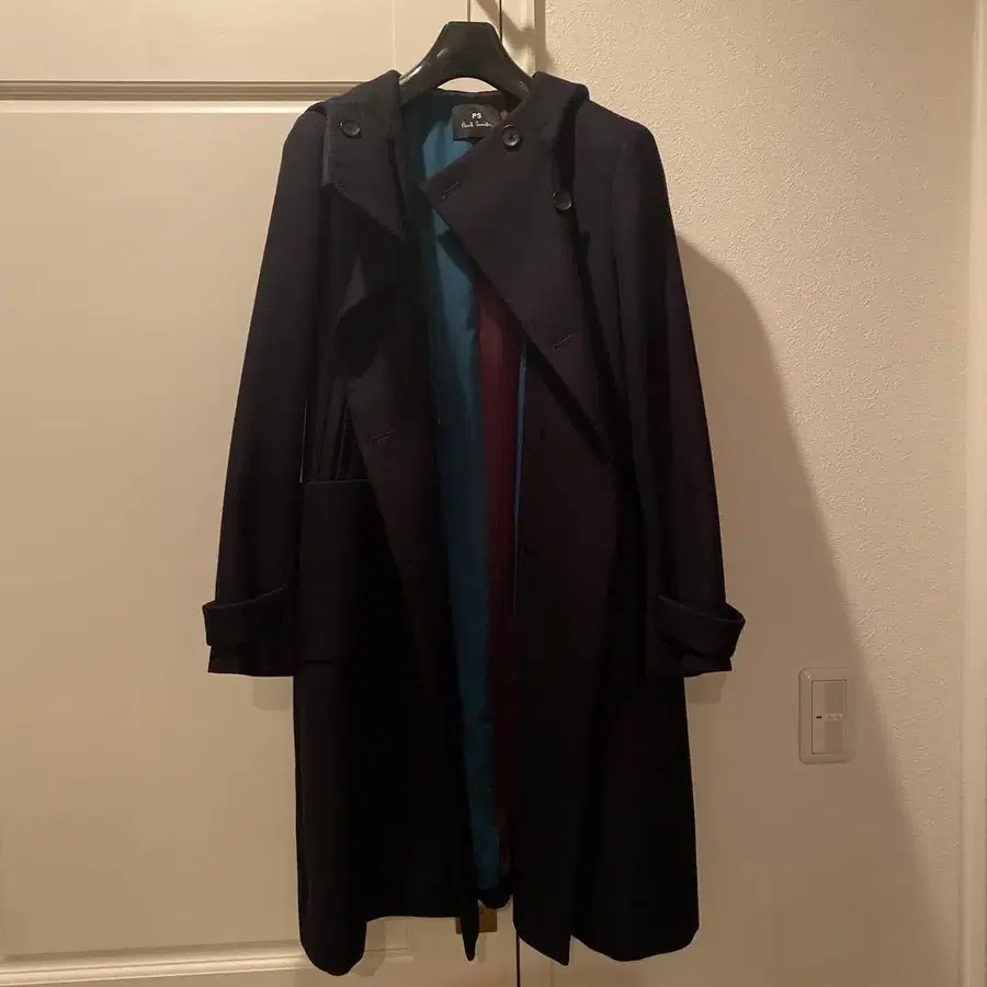 폴스미스 네이비 후드 부착 롱 코트