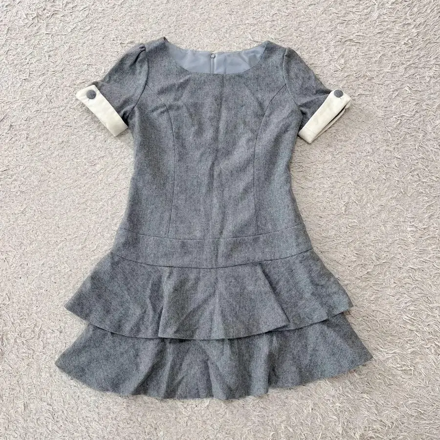 반팔 미니 원피스 (M) 그레이 울 혼방 리본 프릴 레이어드 페미닌