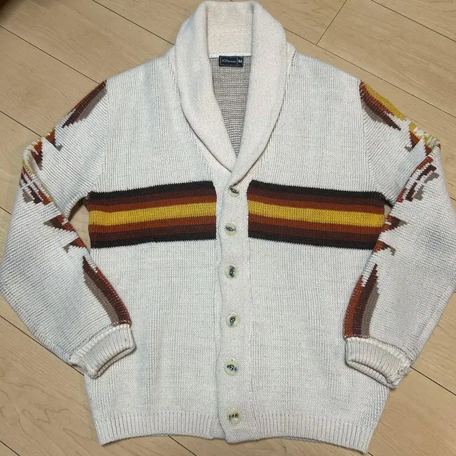70s JC Penney 스웨터 니트 가디건 네이티브 무늬