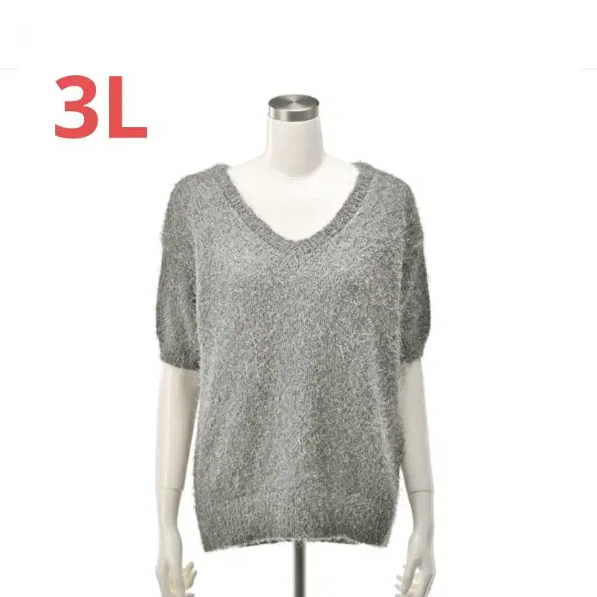 앙코키누 반짝이는 필름얀 니트 반팔 풀오버 그레이 3L