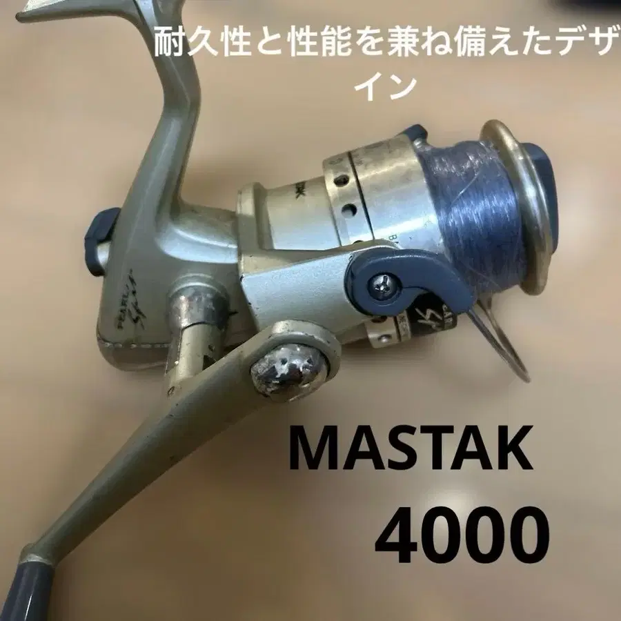 자동 번역되었어요. 원문보기MASTAK 스피닝 릴 4000, 실버와 골드의 콤비네이션으로 내구성과 성능을 겸비한 디자인.