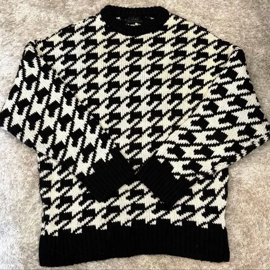 [ ZARA ] 니트 하운드투스 체크 화이트 블랙