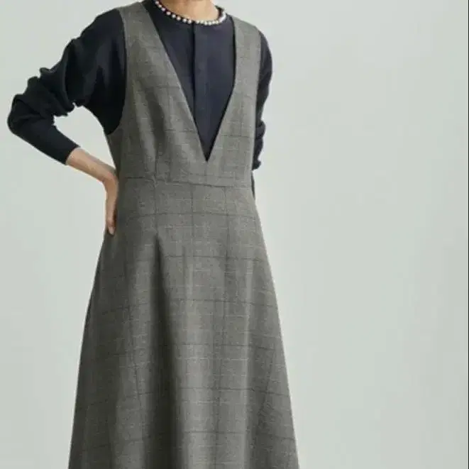 ROPE' PICNIC 플레어 체크 오버롤 스커트 그레이 S 사이즈
